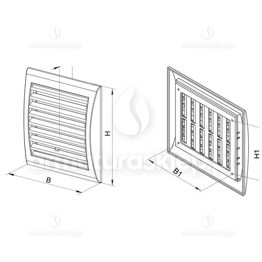 Parametry Vents kratka wentylacyjna regulowana 154x150mm z regulowaną żaluzją biała MW103R: